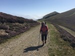We walked by a small cabin used for shelter in severe weather, which “saved us” as we walked through cold, driving rain and wind on our way to Roncesvalles in 2012. Today, with the sun shining, clear blue sky above us and puffy white clouds hesitantly approaching the mountain tops while we walked, was a very different scene and a brand new experience for us compared to 2012.