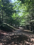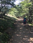 We stopped for a brief break and for the first time saw the valley below and terrain approaching Roncesvalles, some 2 miles away. We remembered only the steep descent from 2012 in the rain and fog, the slippery and long, unending knee killing down-slopes taken on without trekking poles. Today, with clear, cool weather, dry walking surfaces and a set of poles for both of us, we opted to take the traditional Camino path through the forest instead of the longer, more gradual sloping alternative route, which veered off to the right.