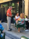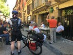 An extraordinary Camino moment occurred while we were savoring our pintxos. First, a 70+ (young) something Spanish serenader began singing with a opera quality voice, personally serenading various people seated at tables lining the Rua Santa María outside the cafes. After several marvelous performances, a lady at one of the tables began singing with him, she with an equally professional voice. They appeared to be singling out people who they knew and making a personal tribute to them in the serenade.