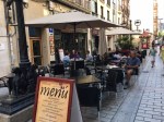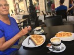 On our way to finding our room for tonight, we stopped at a nice bar and had cafe con leche and a variation of our usual tostadas, with Jim having a small baguette with chorizo and egg.