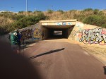 Graffiti is common on all underpasses on the Camino. They contain the usual religious, political, humor and maybe even gang territorial markings. But today, because we walked through so many, the artwork and writings made more of an impression.