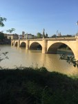 After a moderately steep, paved descent, we continued through a nice park along the Rio Ebro before crossing the 19th century Puente de Piedra into Logroño (pop. 150,000).