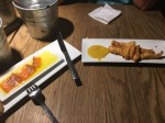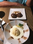 That wasn’t working so we moved on until finding another restaurant with a half empty table, sat down and sampled two more pintxos and two desserts, before walking back to our room at 9:30 to get some sleep before our hike early tomorrow morning.