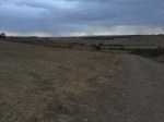 A not-so-steep incline brought us back up to the meseta and we began the remaining 3 mile walk to Hontanas. A few minutes on the meseta and the wind picked up dramatically. The sky ahead looked brighter and Linda commented that it looked like the rain had moved on and Jim, observing the fast moving dark clouds moving to where we had been, agreed.