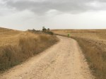 We were on the meseta less than a mile when we headed down into a shallow valley (150 ft deep) and passed San Bol, a very primitive albergue located near the ruins of an 11th century Monastery, named after San Boadilla, a local saint.