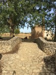 Just before arriving at Sahagún, we crossed over a medieval bridge and made a brief visit to the Ermita Virgen del Puente, built in the Sahagún historic Romanesque-Mudéjar architectural style, which incorporated Islamic decorative motifs and was built primarily out of brick rather than stone. It was built in the 12th century and underwent some renovations in 2011. Also at the site was the geographic halfway marker for the Camino Frances, if you start in Spain as opposed to SJPDP.
