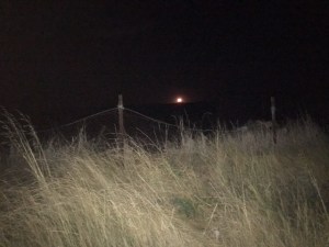 Limits of our iPhone didn’t capture the vivid orange moon and corona as it sank below the horizon.