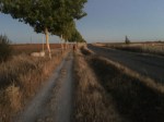 The Camino this morning was a narrow path about a yard wide and it paralleled a narrow two lane paved road. Traffic was light on both the road and the path.