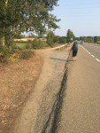 Immediately after we crossed the bridge, the widest Camino path so far and smooth with only a few sandal seeking pebbles paralleled the two lane, very busy N-601. Initially we had a nice barrier between us and the vehicles, than the path narrowed and got closer to the barrier, then the barrier disappeared and finally we were walking on the paved shoulder of N-601 with only a few feet between us and oncoming traffic including some REALLY BIG TRUCKS!