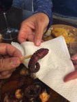 Because Melide is, today, well known for its Pulpo á la Gallega, (boiled octopus served with olive oil & paprika), we then walked to the nearby Pulperia A Garnacha, where we had pulpo (boiled octopus), pimentos (roasted baby pablano peppers) and a tortilla (Spanish omelette)… and Mencía wine.