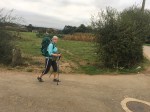 We took a shortcut from Pousada de Salceda after having breakfast at the Albergue. This is the same shortcut that the Pousada owner shared with us in 2015 along with instructions to locate the clinic in Arca to treat Lind’s spider bites. The “shortcut” allowed us to angle back into the Camino (the hypotenuse of the triangle) rather than having to reverse the 400 meter deviation we took yesterday to get to the albergue. About halfway along the shortcut, a car approached us coming toward the Albergue and slowed to a stop. To our pleasant surprise, it was the owner of Pousada who shook Jim’s hand through the window, gave us both a warm smile and wished us both a “Buen Camino” and then we parted company once again and continued on our respective ways.