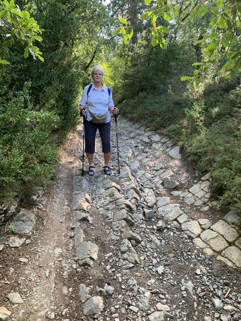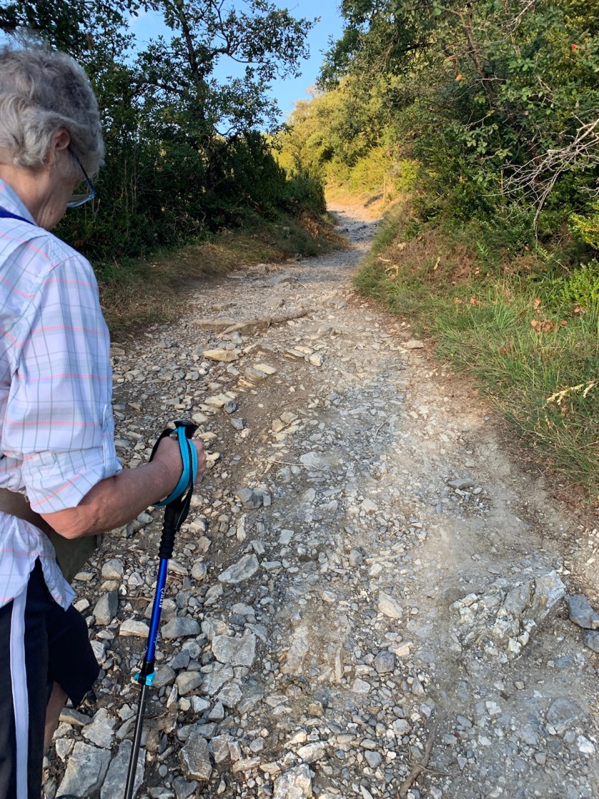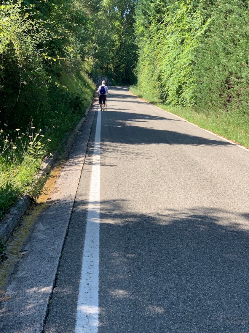 We, on the other hand, were both exhausted from today’s walk due to the total length and the heat of the mid-day sun plus a combination of: (1) frequent up and down sections, shorter in duration than crossing the Pyrennes, but nonetheless, physically challenging.