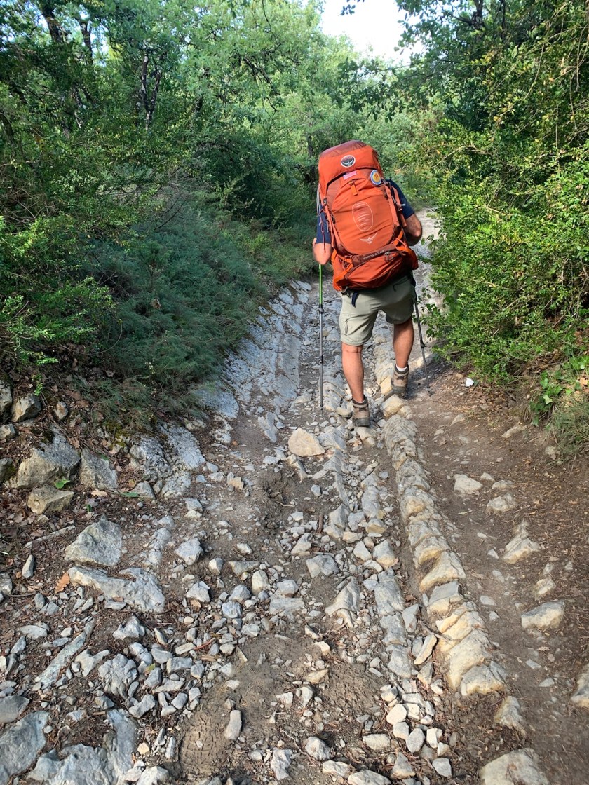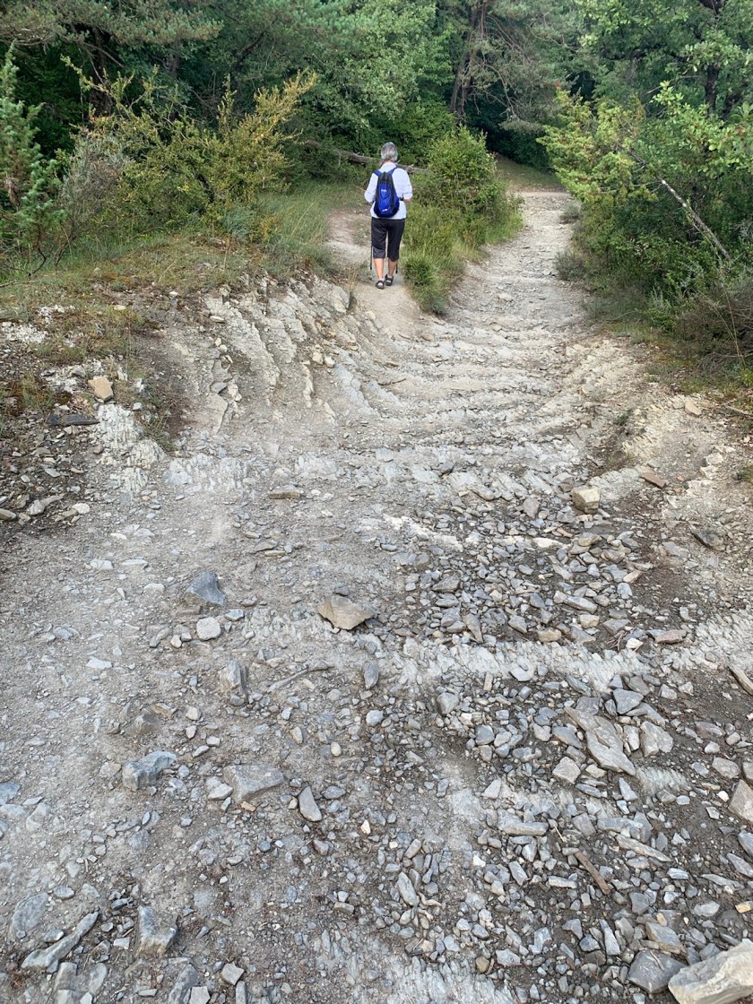(2) more than half of the time, paths consisted of treacherous footing on sharp, shale-like layered rock either loose or extending vertically or at an angle instead of horizontal… almost continuous for the last 1.5 miles into Zubiri