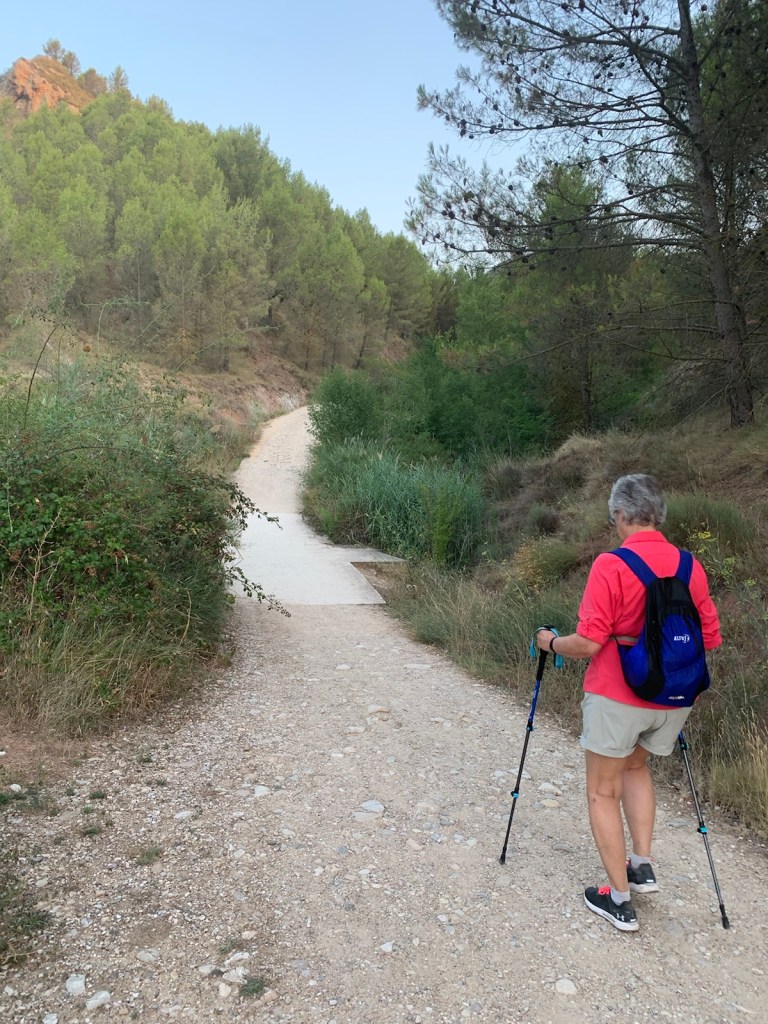 Starting out at 6:20, at first light, gave us confidence we could significantly reduce the sun as an issue. We crossed the Queens Bridge as we left Puente la Reina.