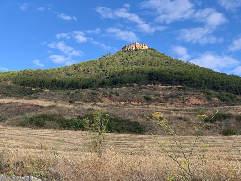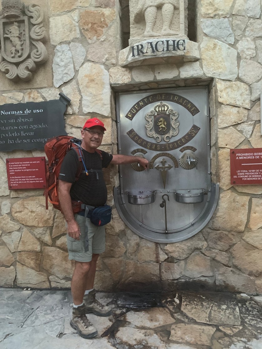 The first mile and a half out of Estella was on steep concrete surfaces through surburban residential areas. Crossing the highway out of town we continued upward passed the Irache Monastery, which dates back to the year 958… and the Irache Winery with its famous wine fountain, yes, 🍷 fountain.