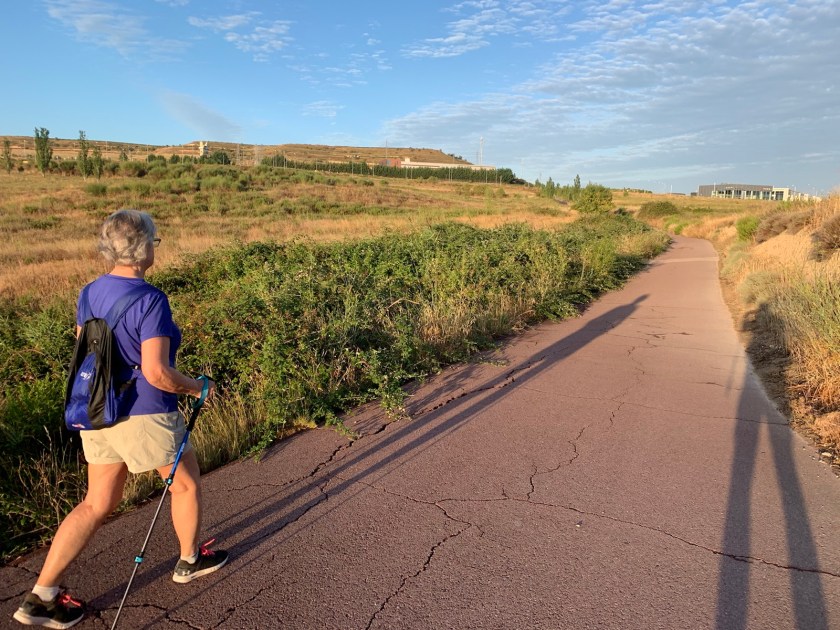 We passed through a community garden area, then on a paved road through vineyards before joining a dirt path that continued to the outskirts of Logroño, just before sunrise.