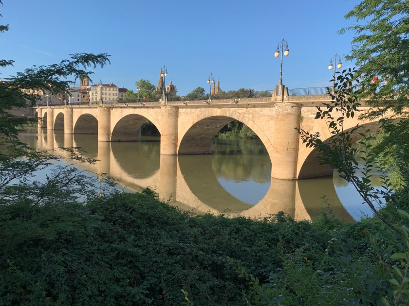 The final few yards were through a park along the Ebro Río then across the Puente la Piedra into Logroño.