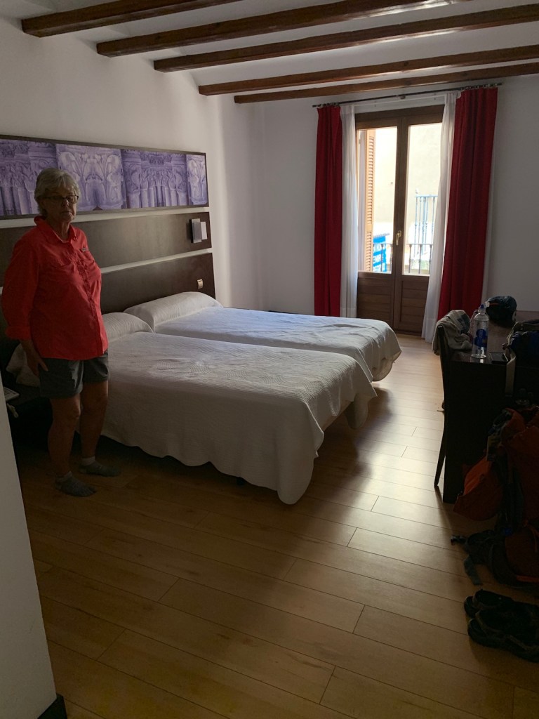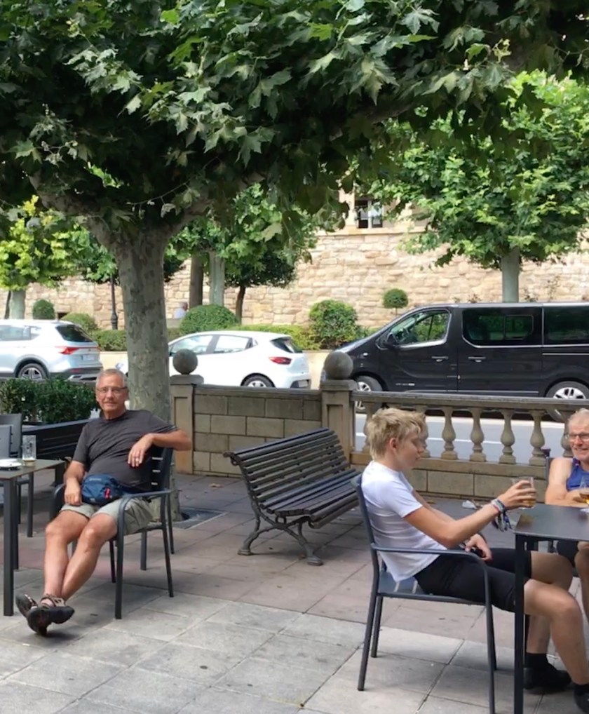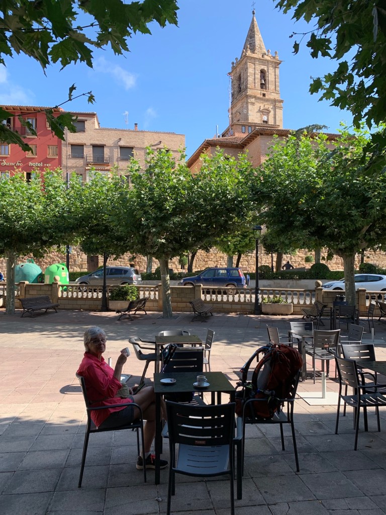 We continued our walk along the Camino into town center and Hotel Rey Sancho(55€). Our room would not be ready until noon, so we settled down in the nearby town square for a supplemental cafe con leche and enjoyed the cool breeze and shade.