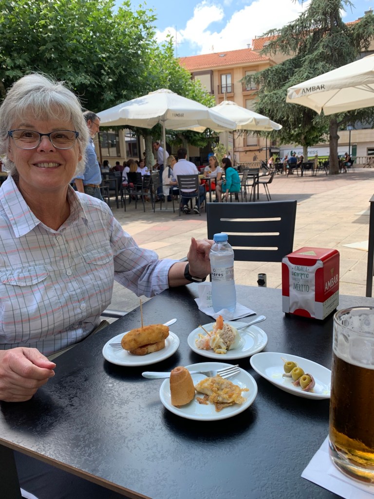 Today’s surprise was the most delicious mushrooms we have ever tasted. We ordered two and savored every morsel, then sopped the residual garlic/olive oil drippings with torn pieces of baguette. We learned later that mushrooms are a specialty of Navarrete. How did we miss this in 2014 and 2017?!