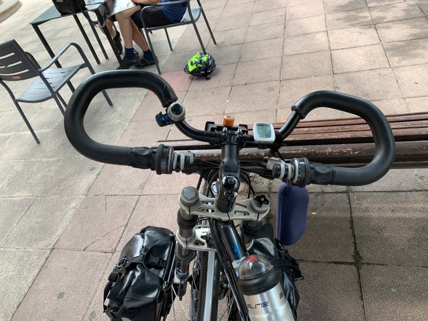 While reminiscing our most recent culinary triumph with the last few sips of Riója red, Linda observed an unusual tandem bicycle pull up and an apparent grandfather and grandson disembarked and sat down at an adjacent table.