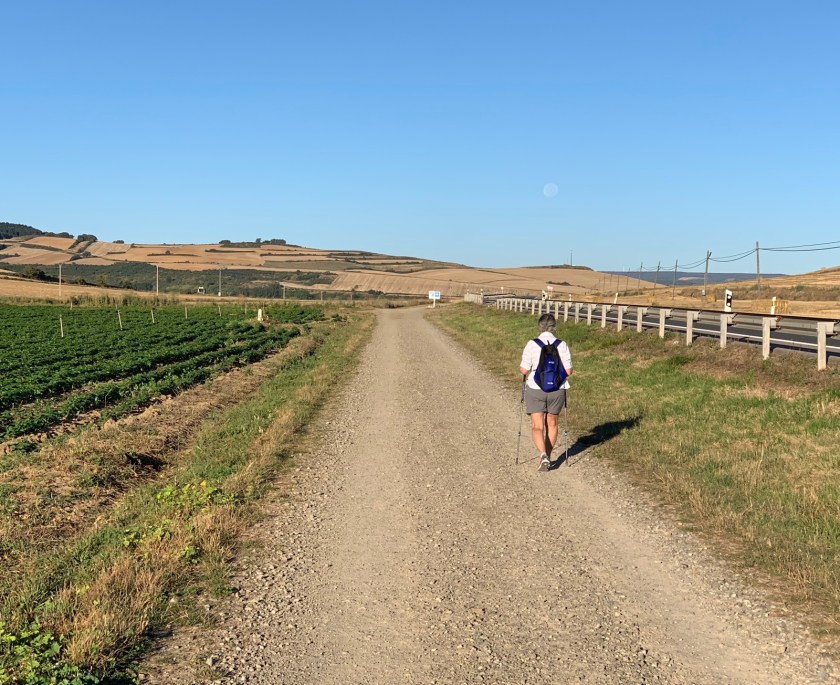 Following a brief break from the highway path, we resumed walking along N-120, the national highway that follows the Camino.