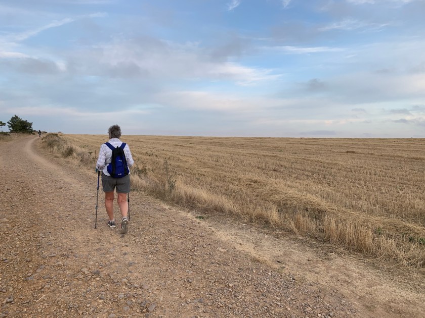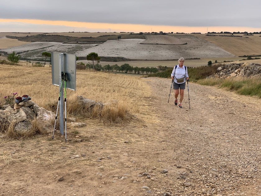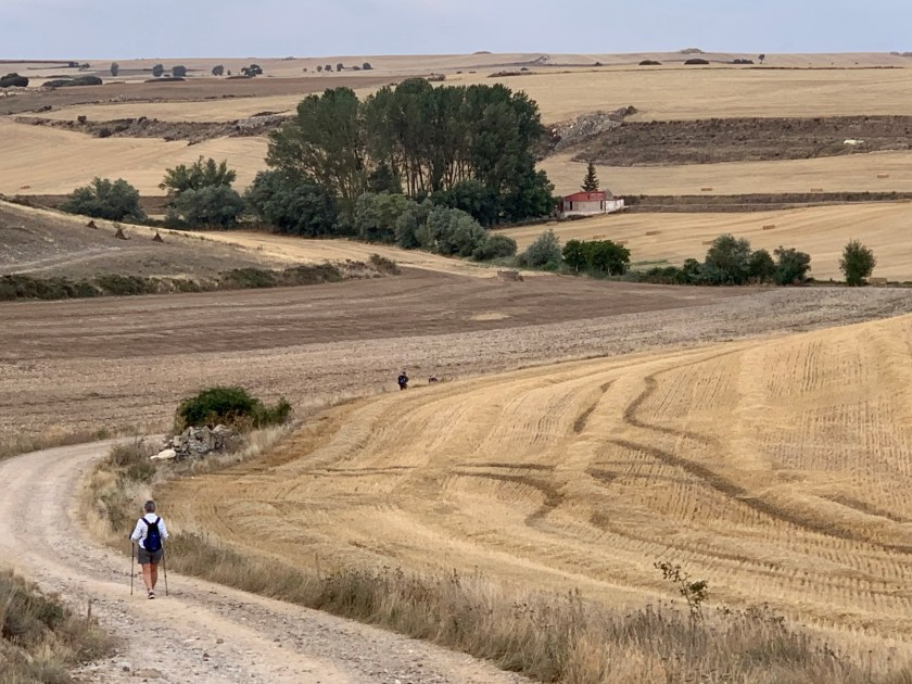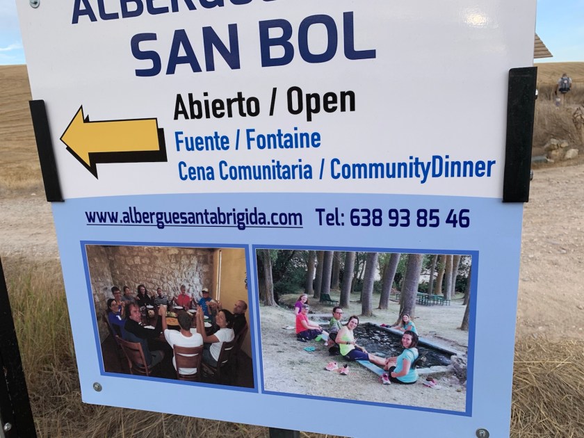 We walked along the Meseta for several miles until the next “bowl”, a smaller one, called San Bol (pop.2?) with a primitivo albergue as its sole structure.