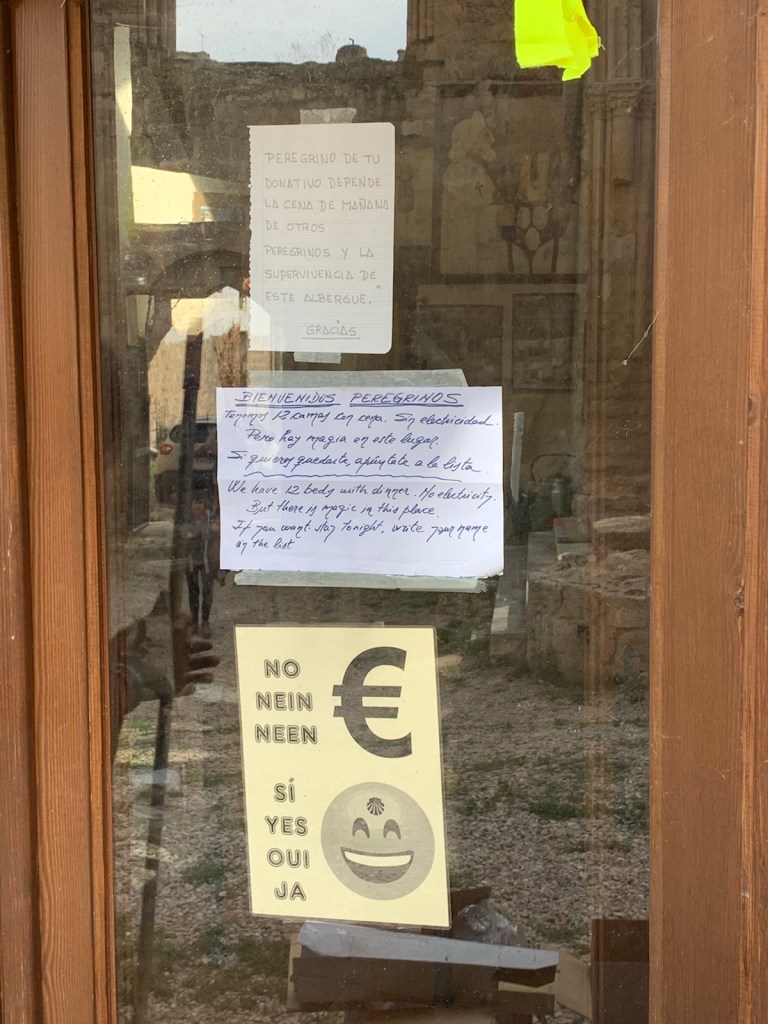 We stopped at the albergue and were welcomed by a very soft-spoken and kind volunteer (2 months) who was the keeper/caretaker of the albergue.