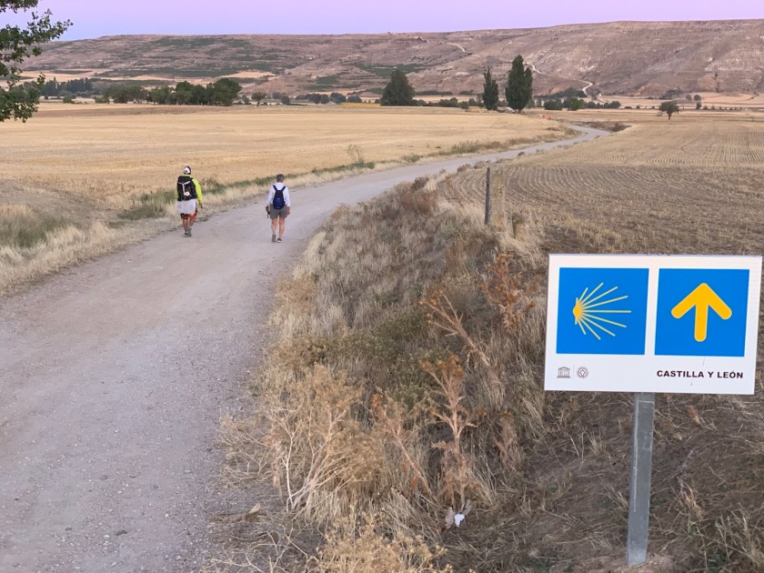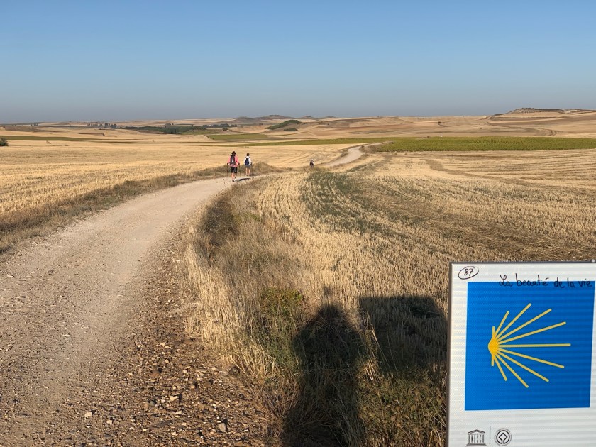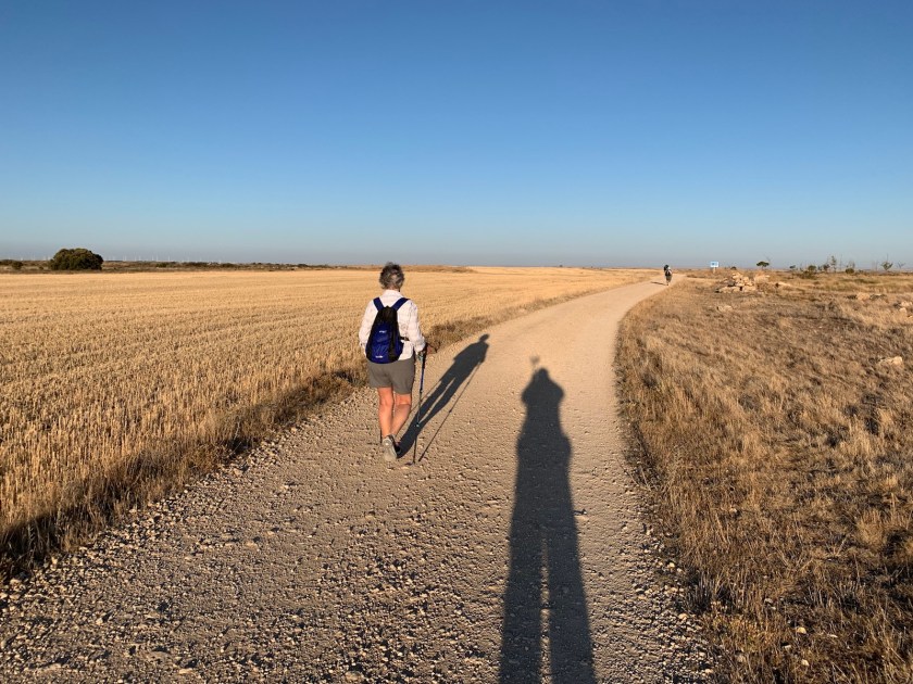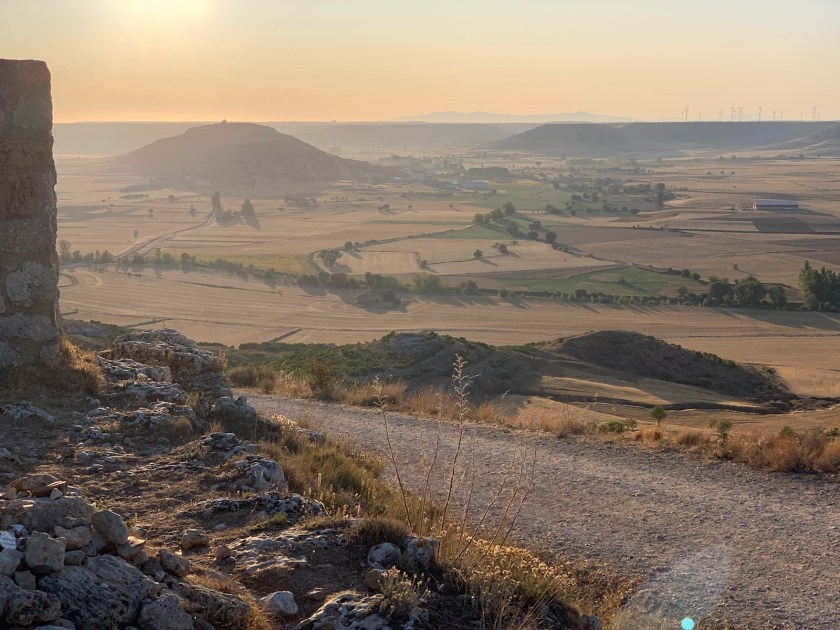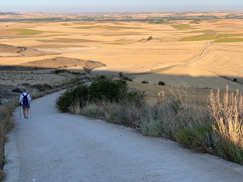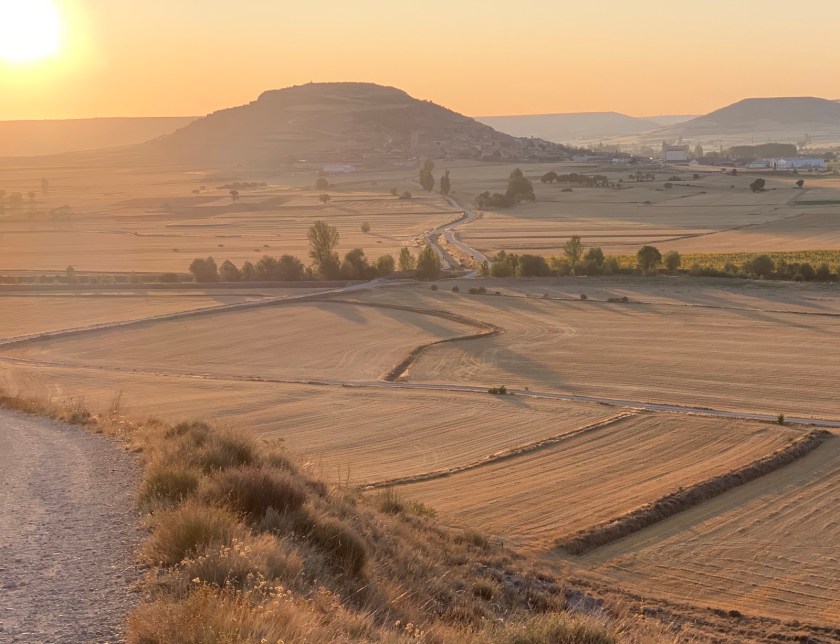 When we stopped to catch our breath, we looked back toward Castrojeriz into the extraordinary views in spite of the rising sun dominating a cloudless sky.