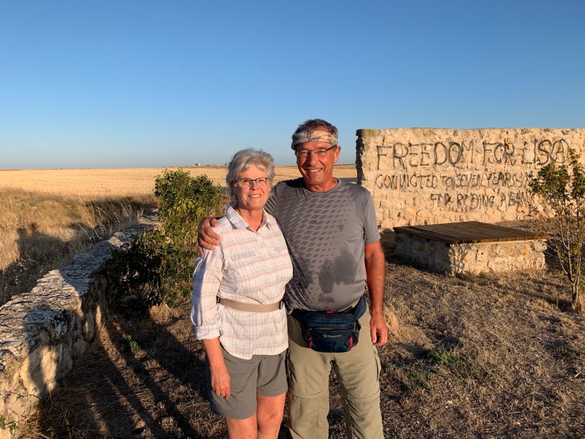 The climb back up to the Meseta was very difficult, a sign said it was a 12% grade. Linda and her Fitbit rated it 45 floors.