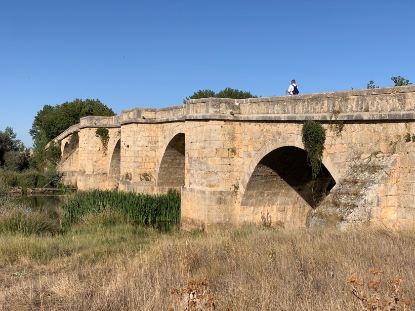 The Meseta is boring? We don’t think so!We walked for three miles through the fields before crossing the Puente Fitero. It was commissioned to be built in the 11th century by Alfonso VI and restored in the 17th century to its original Roman design, and is one of the longest bridges on the Camino.
