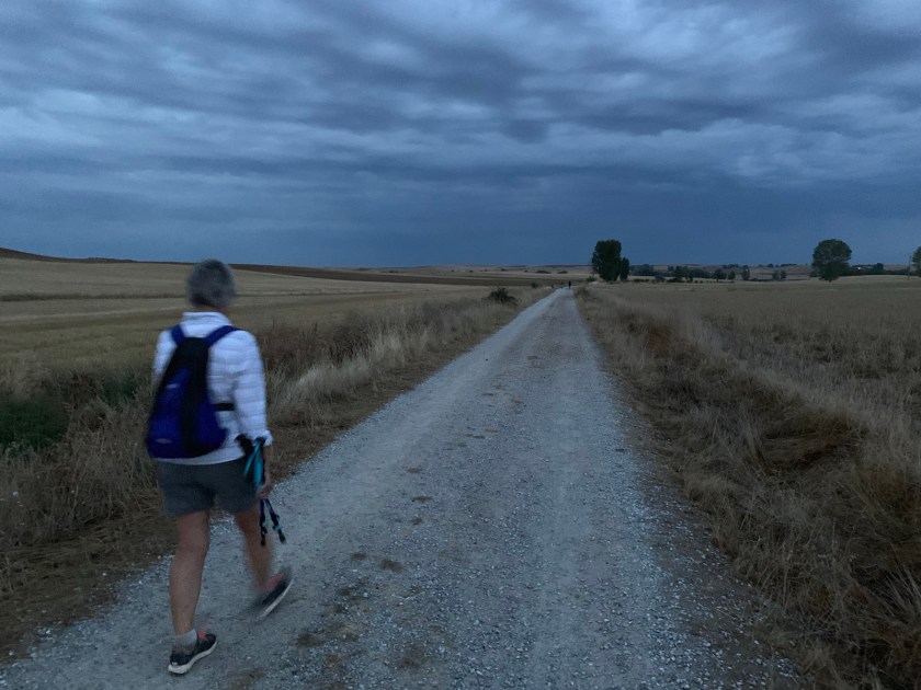 It rained late yesterday afternoon and again during the night. A threatening sky greeted us this morning as we left the albergue making it appear darker than a typical 7:15.