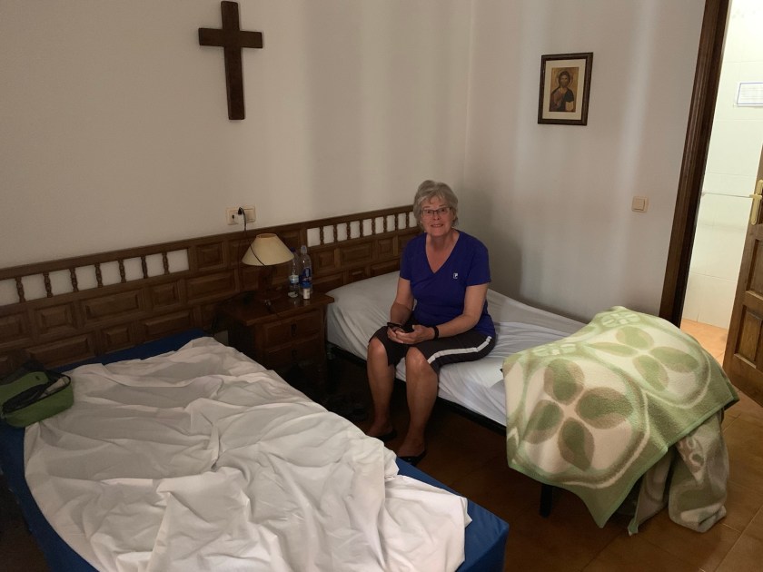 Our double room with a private full bathroom is clean, basic and an inexpensive, safe place to stay on the Camino Frances. The usual hostal amenities, like soap, shampoo, towels, pillow cases and room key were not included and a single sheet, blanket, pillow and mattress were provided. We managed as we normally carry “backup” amenities, just in case.