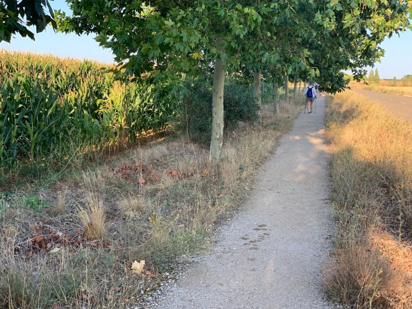 As we are getting closer to León, and the end of the Meseta many of the dirt paths are tree lined, which provides much needed shade if walking in the afternoon sun.