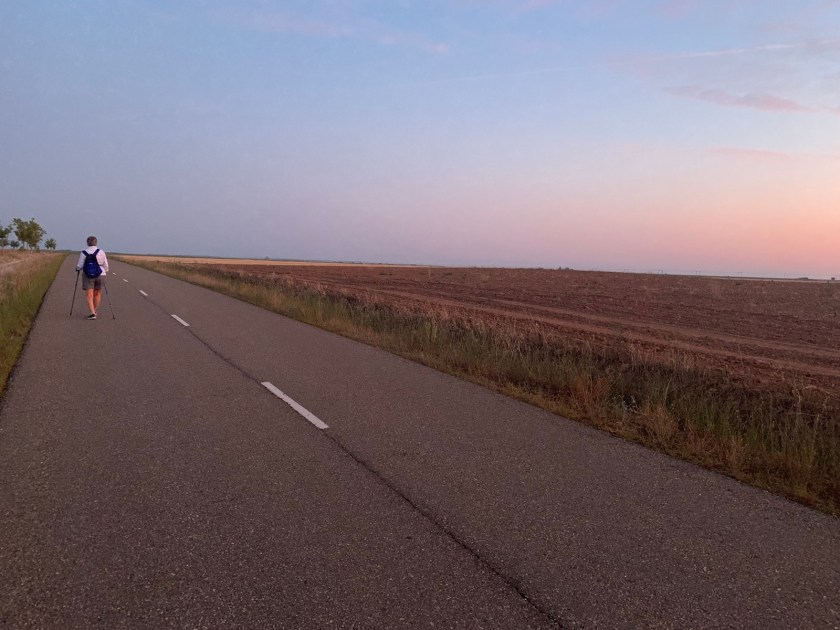 We walked in the road for about an hour, the path to our left. (Didn’t want to step on a critter that assumed no self respecting pilgrims would be out at this hour)