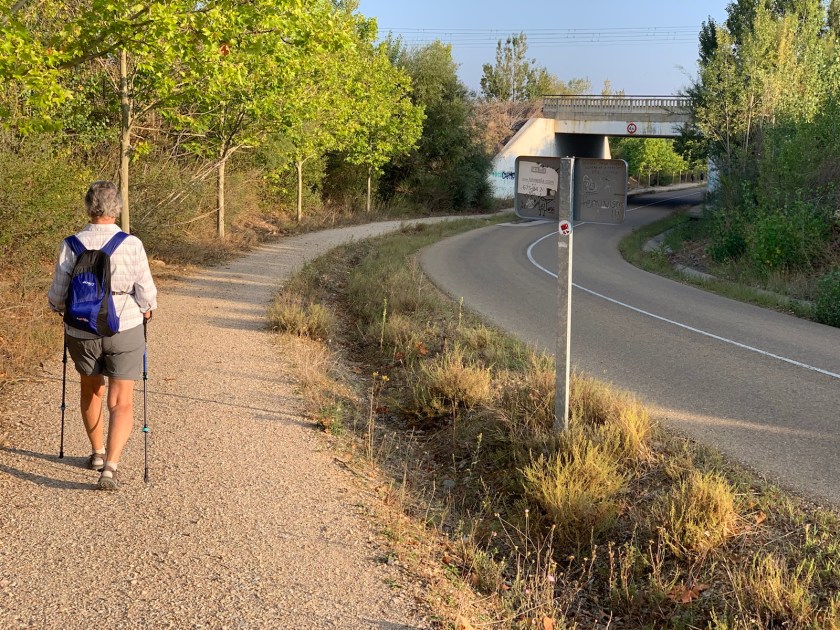 Walking in the road wasn’t a problem since there were no cars out either. We actually passed one pilgrim who had started sooner than us (if she walked slower than us, she’d have to start early!)