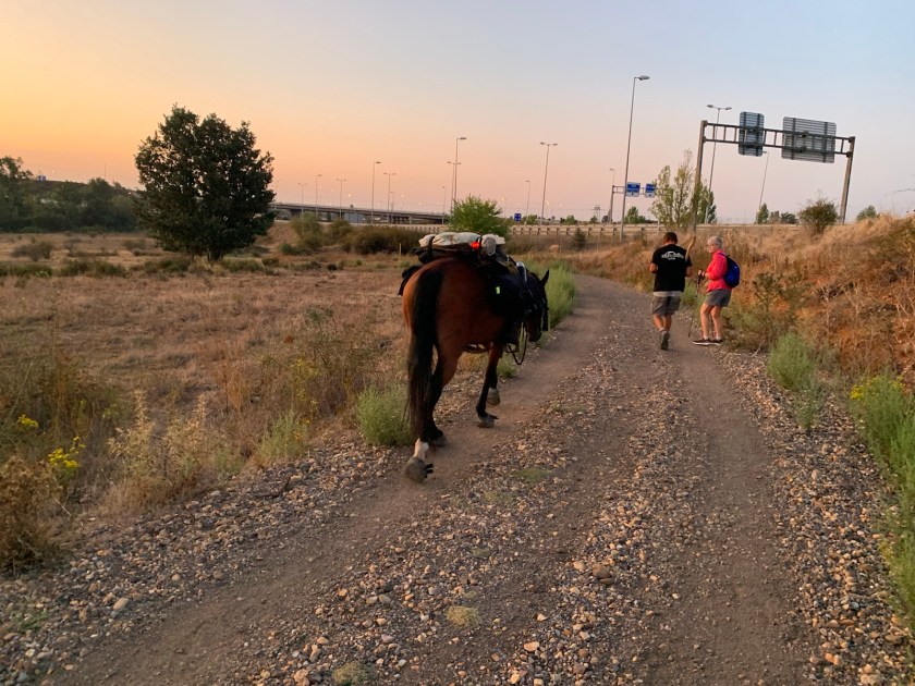 Interesting pilgrim entourageThe horse walked around us and once he was clear of us moved back into the path behind the guy he was following… much more safely and considerate than many of the cyclists we’ve encountered in the past few hundred miles!