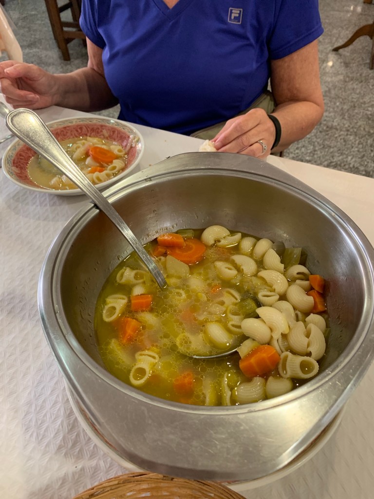 Linda was served an unusual version of “minestrone soup” that was very delicious, but much more than she could possibly consume in a single meal.