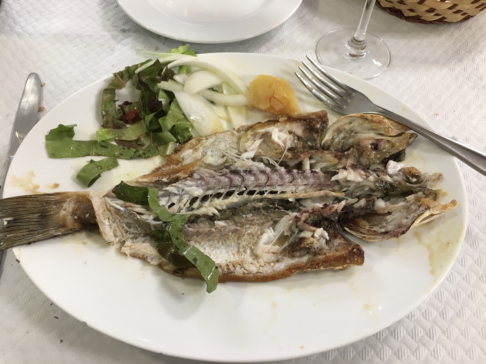 Jim had grilled fish, called “Lupina” and left only the bones, head and some skin.
