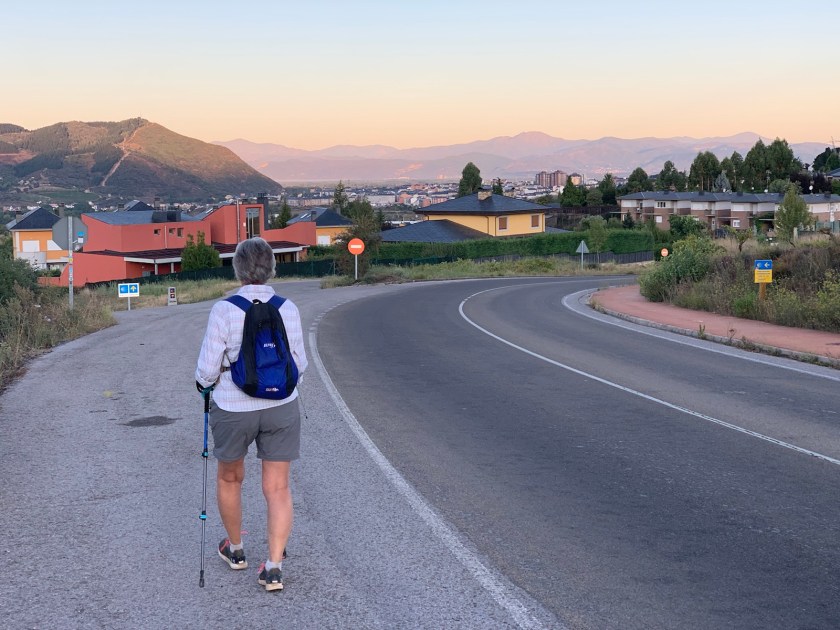 Today, having spent the night in Molinaseca, it was a much easier walk plus we decided to take the not recommended route, walking straight into the city on sidewalks versus swinging left of the city through some unattractive farms and abandoned buildings, then into the city through an old, depressed section.