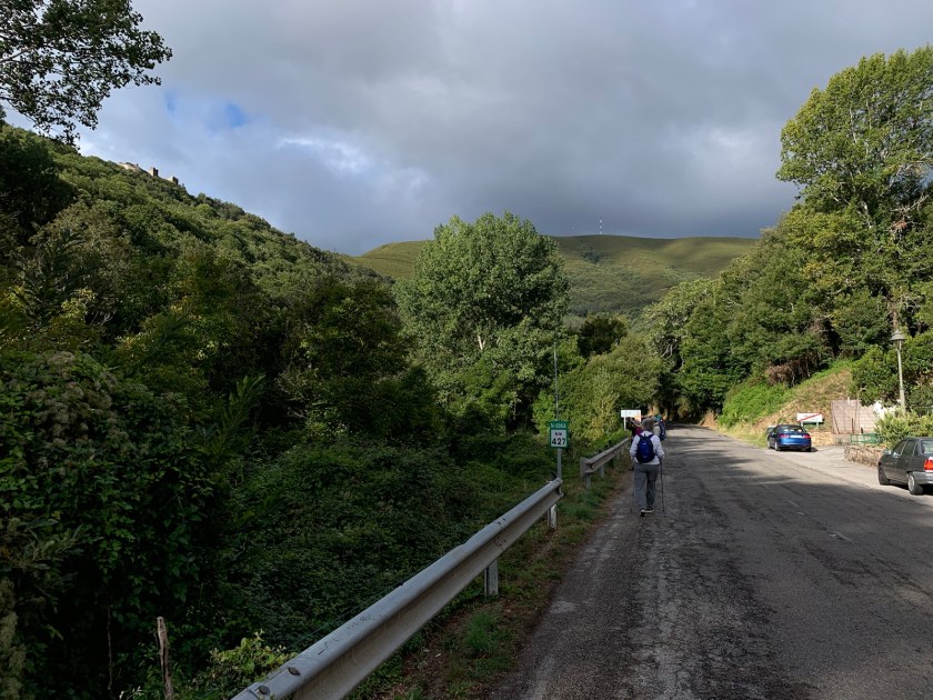 This small village is literally at the end of the road, which becomes a path through the forest, then a steep “wash” up the side of the mountain, then a path again, climbing up the side of the mountain until it reaches the top, some 4 miles later at La Faba and finally, O Cebreíro. We know this, because we did it in 2017.