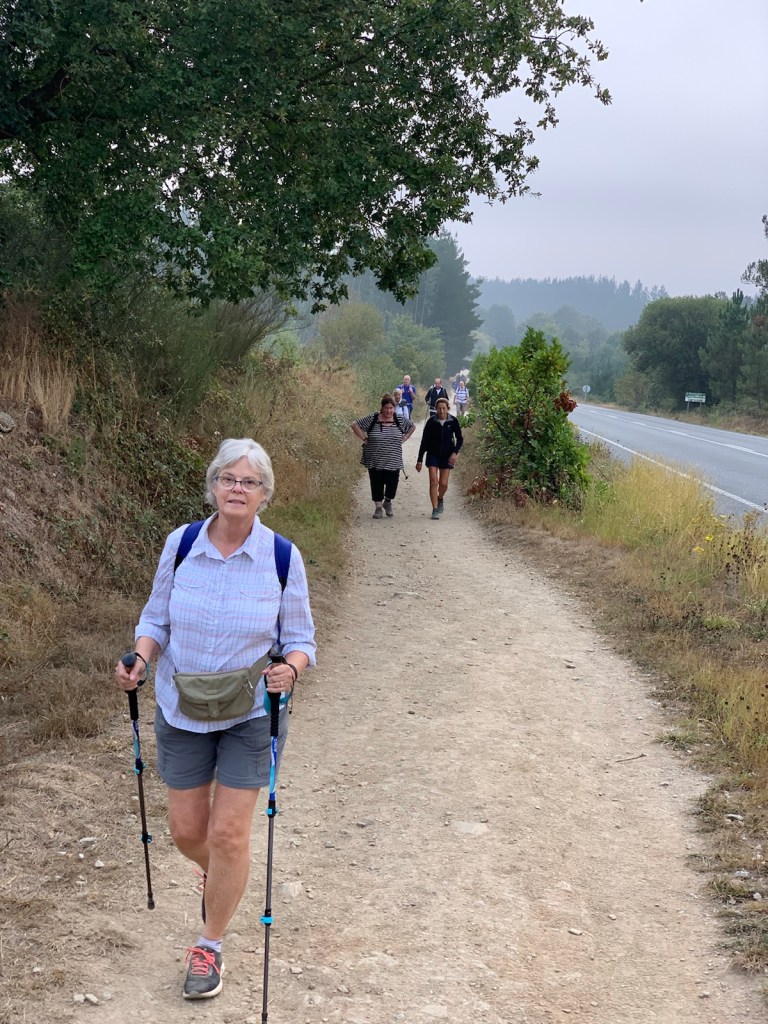 Our walk today was all uphill, the steepest part being during the first mile. As we walked and chatted with other pilgrims, the majority of them were from different parts of Australia. After several chats, we learned they most of this particular group of pilgrims were with a tour group that had started in Sarria yesterday and was walking 15 miles today before stopping in Lestedo, the village with only one hostal and our destination tomorrow night, thankfully. (Now we know why it was totally booked when we called last week.) We also met up with Ted and Diedra from Connecticut, who had spent last night in Portamarin. They had expressed concern during dinner at Casa Nova about “losing” the group of pilgrims friends they had walked with for several days, by staying two nights at Casa Nova. We then learned they were taking a day off, because Deidra had injured her toe. Linda suggested several fixes which Diedra had apparently applied with good success. We stopped and talked for a minute or two, got an update on the “fixed” toe, then moved on, as they had already “bonded” with a new “community” of pilgrims friends.