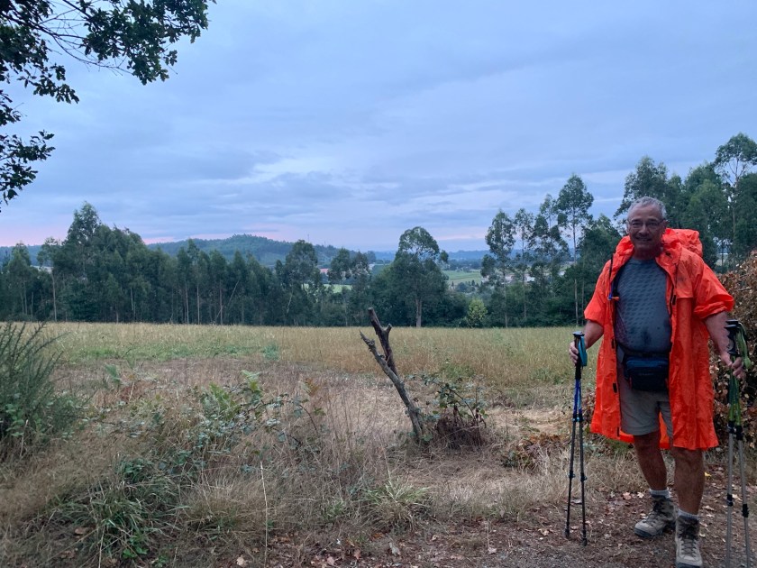 When we awoke this morning there was no rain, but all the weather forecasts and weather maps showed it was raining, or would be in 18 minutes. So we put on our rain gear and departed for Arzúa, a mere 4 miles away.
