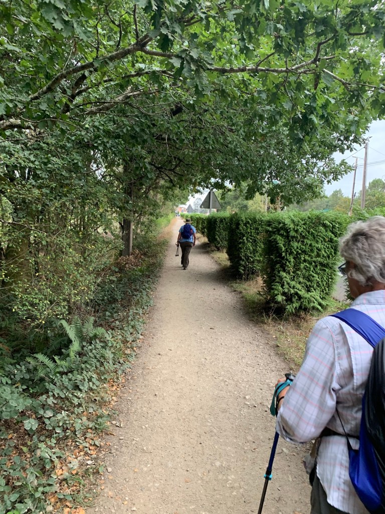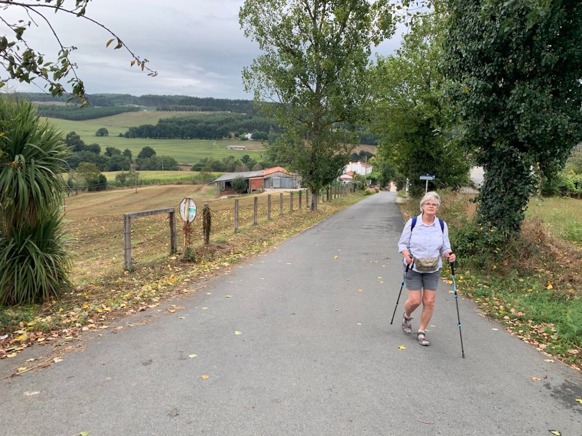 Getting back to today’s walk, it was threatening rain the entire way with slight drizzles but nothing to justify serious rain gear. Linda was first to take off her poncho, but Jim hung on for a little longer feeling that if we both took off our gear we would lose it’s deterrent effect.