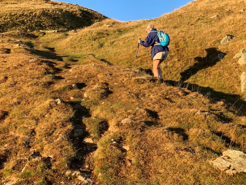 For the next half hour we climbed a final steep, pebble covered road, passing a beautiful Basque horse (we bet our grand- niece, Abbie, would like to ride) and continued until we reached the summit of the Col de Lepoeder, to begin the trecherous descent into Roncesvalles.