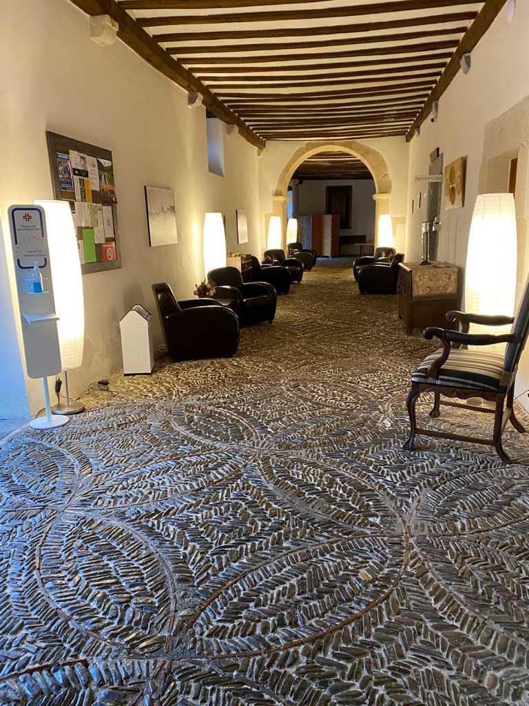 Our temporary home, the Casa de los Beneficiados (Hotel Roncesvalles), was built in 1725 for clerics ( beneficiados) who helped the Roncesvalles based canons in their ecclesiastical work. During the 500 years before that, it served as housing for pilgrims, was destroyed by fire and rebuilt and was used as temporary headquarters for a Napoleon general in 1813, who shortly and hurriedly returned to France, freeing it again for los beneficiados. The interior was completely renovated and converted to a hotel in the 1920’s by the Principe de Viana Institution, responsible for the conservation of the cultural heritage of Navarre.