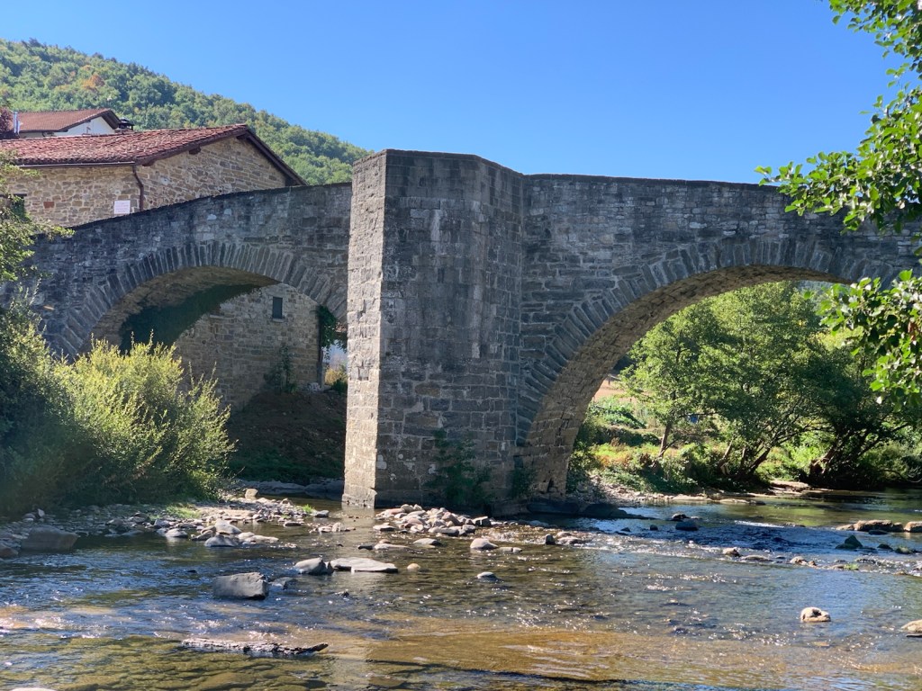 While tackling the last wash, we sneaked a peek at the tops of Zubiri buildings through the trees and breathed a sign of relief! We exited the forest and a few hundred yards later we crossed the medieval 12th century Puente de la Rabia, into the village of Zubiri ( pop. 435).