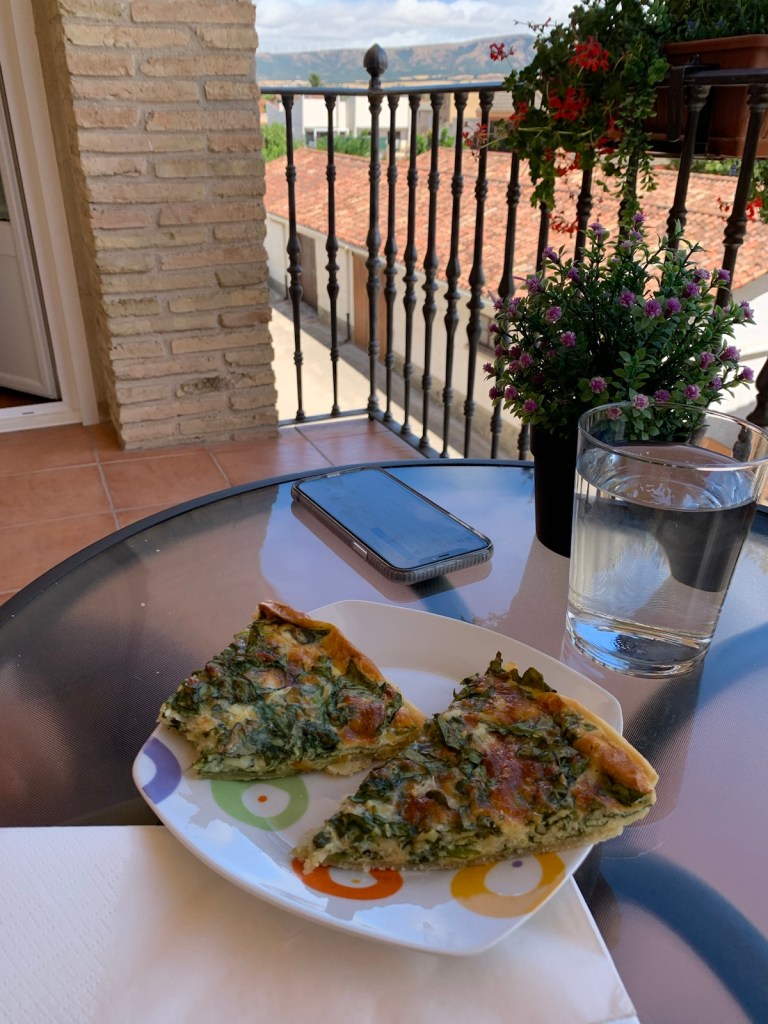 Later in the afternoon Elena knocked on our door with two slices of a spinach tarta she had just taken out of the oven… which became our lunch.
