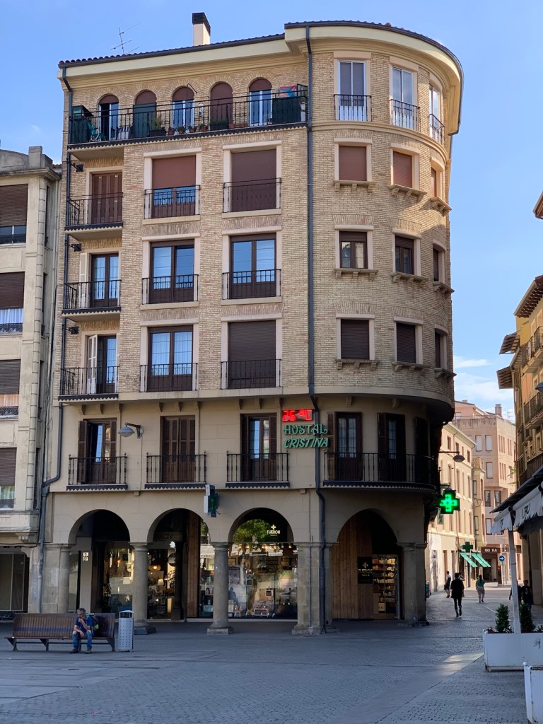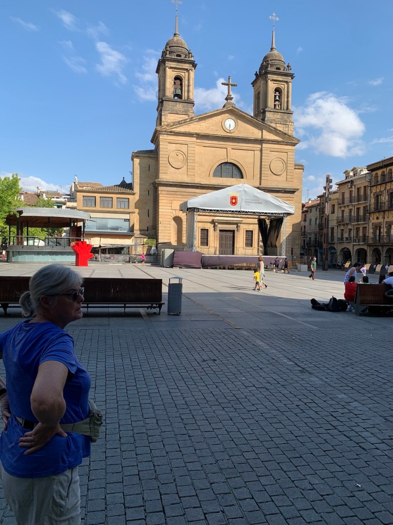 While we ate we observed the plaza as the market vendors began disassembling there displays and packing up their products. Our tummies filled with fried eggs, fries and chicken, we retired to our room and napped, read and blogged until about 5:30, when we ventured out again hoping to find some pintxos to serve as dinner. The plaza was completely cleared, with no evidence of the morning market. “Church of Saint John the Baptist” in the background.