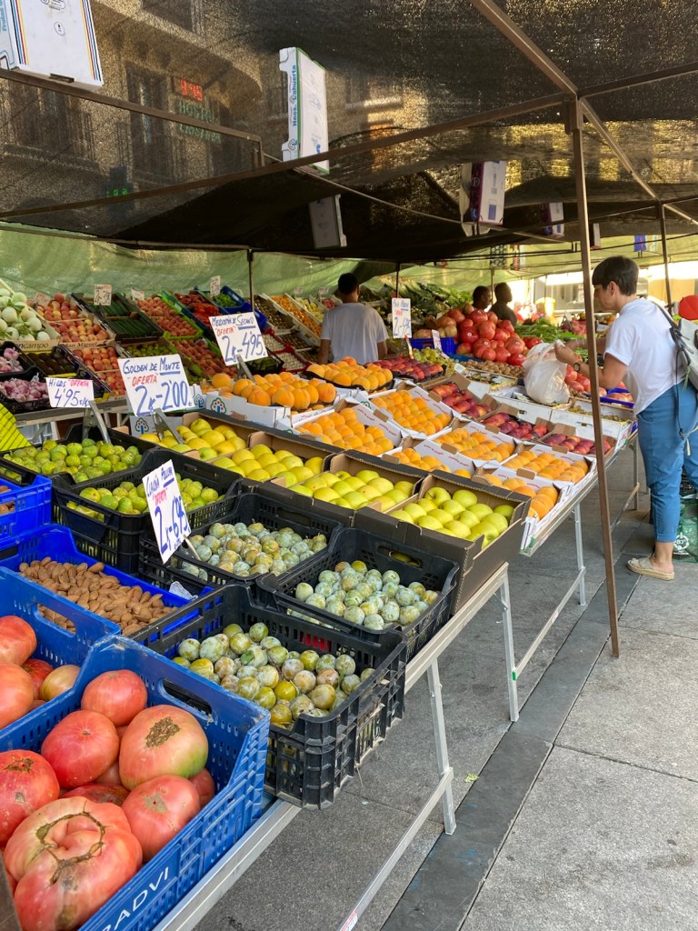 We arrived at Estella around 9:30 and found the Plaza de Iglesia del San Juan Bautista completely occupied with a market. We walked among the shoppers and were awed by the variety and colors of goods offered.