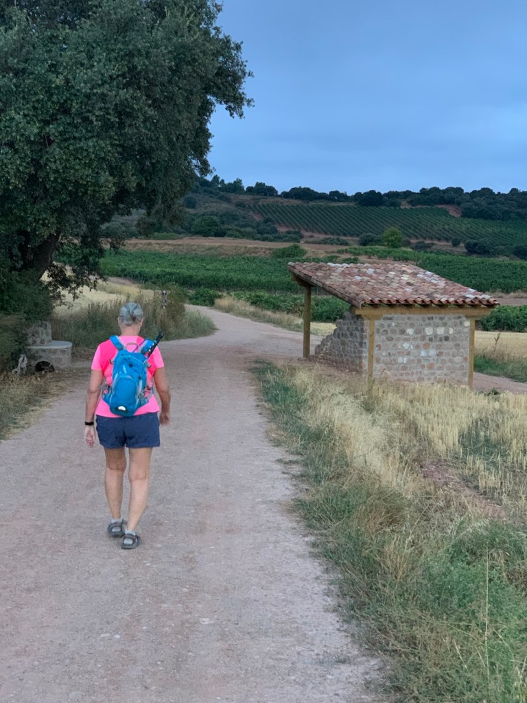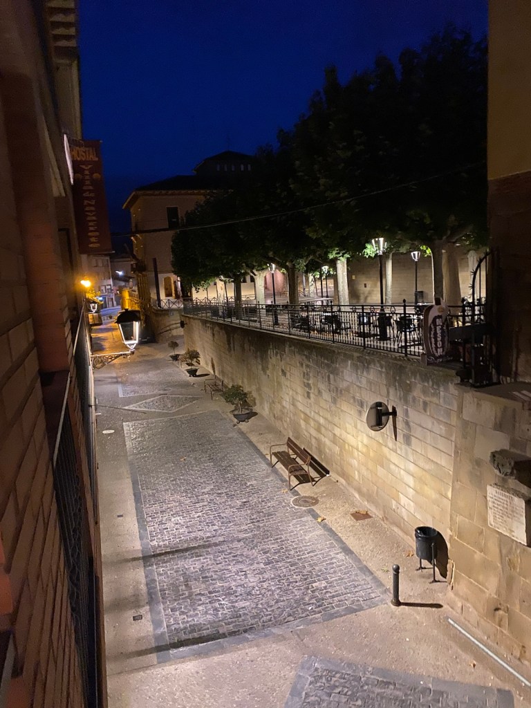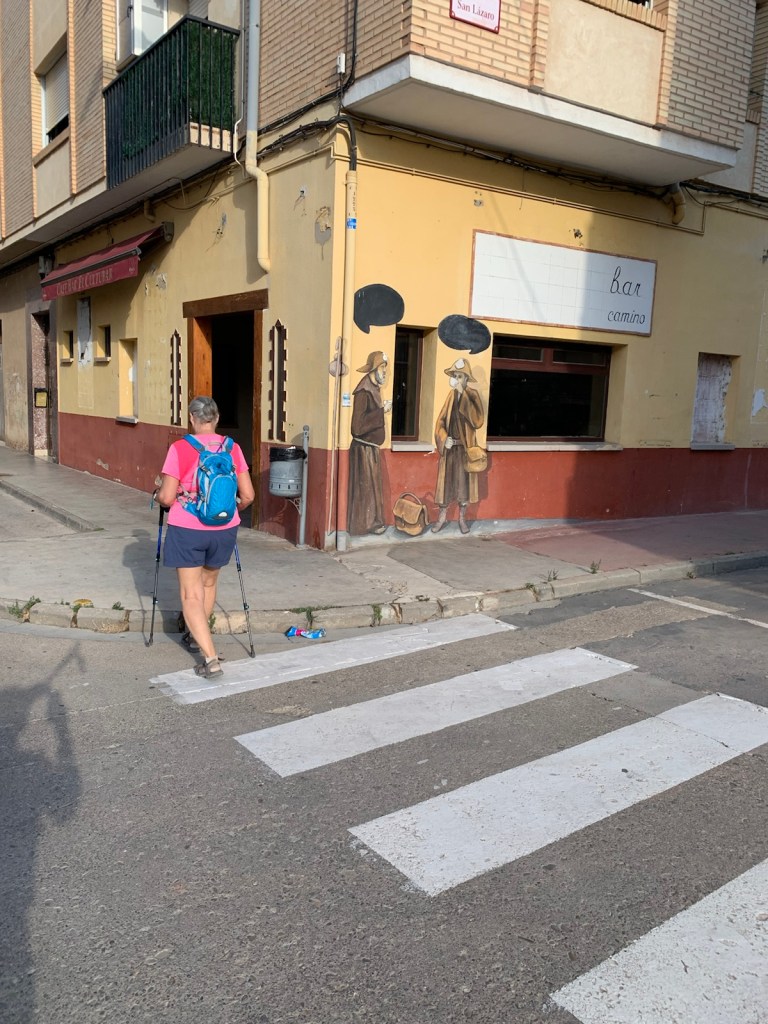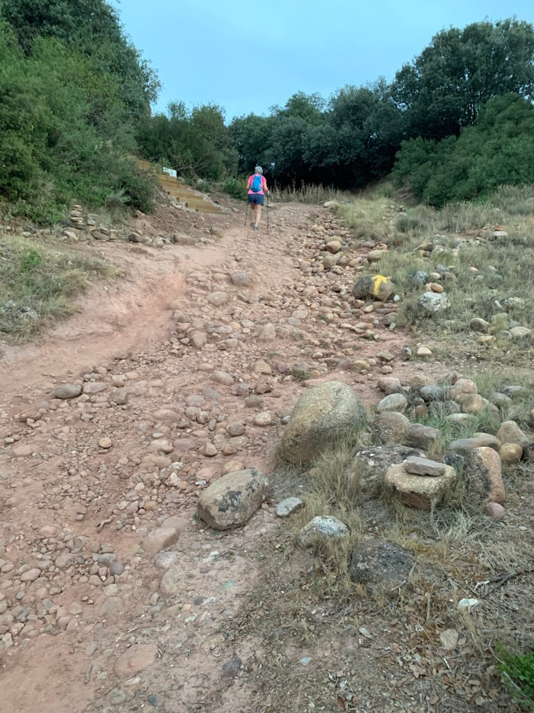 A prearranged taxi met us at our hotel door at 7:00 to take us to Ventosa. Najera is 10 miles away and we decided last night that we’re building our distance stamina at a good rate but not at the 10 mile level yet. The taxi ride chopped off just under 4 miles leaving us a more reasonable walk into Najera… continuing our paced Camino 2022.